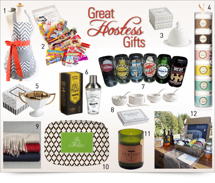 A few of my favorite holiday hostess gift ideas are aprons, candles and candy. I am reminded of the gift giver each time, I cook, light a candle or steal a sweet treat.