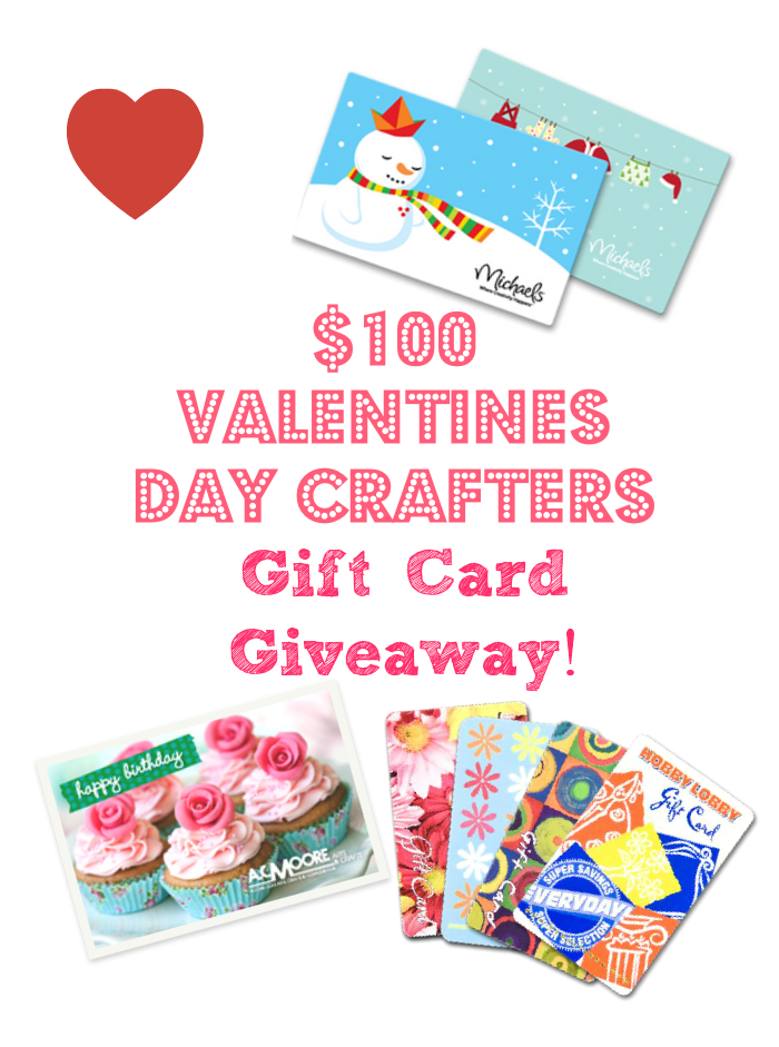 We are so excited to partner with several other blogs to bring you this Valentine’s Day $100 Crafters Gift Card Giveaway! One winner will receive a $100 Gift Card to the craft store of their choice. This giveaway will end on Friday, February 21st at 11:59 p.m. Winner will have 48 hours to claim their prize! Please enter via the Rafflecopter below!